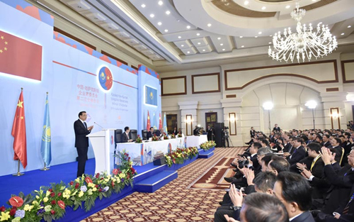 ????國務(wù)院總理李克強(qiáng)當(dāng)?shù)貢r間14日下午在阿斯塔納與哈薩克斯坦總理馬西莫夫共同出席中哈企業(yè)家委員會第二次會議閉幕式并致辭。