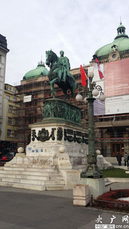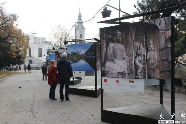 ??? 盡管人們穿著厚厚的外衣,但貝爾格萊德卻并不寒冷,更像是秋天剛剛來到。這兩天,無(wú)論是新城區(qū)還是傳統(tǒng)的舊城都紛紛出現(xiàn)了中國(guó)的色彩。舊城米哈伊洛大公街附近,幾條馬路都掛起了中塞兩國(guó)的國(guó)旗??ㄈR梅格丹城堡還正在進(jìn)行「世界遺產(chǎn)在中國(guó)」圖片展。最神奇的是,記者偶遇的一位老奶奶,得知記者come from China后,立刻用中文唱起了“我愛你中國(guó)”,瞬間親切了很多。