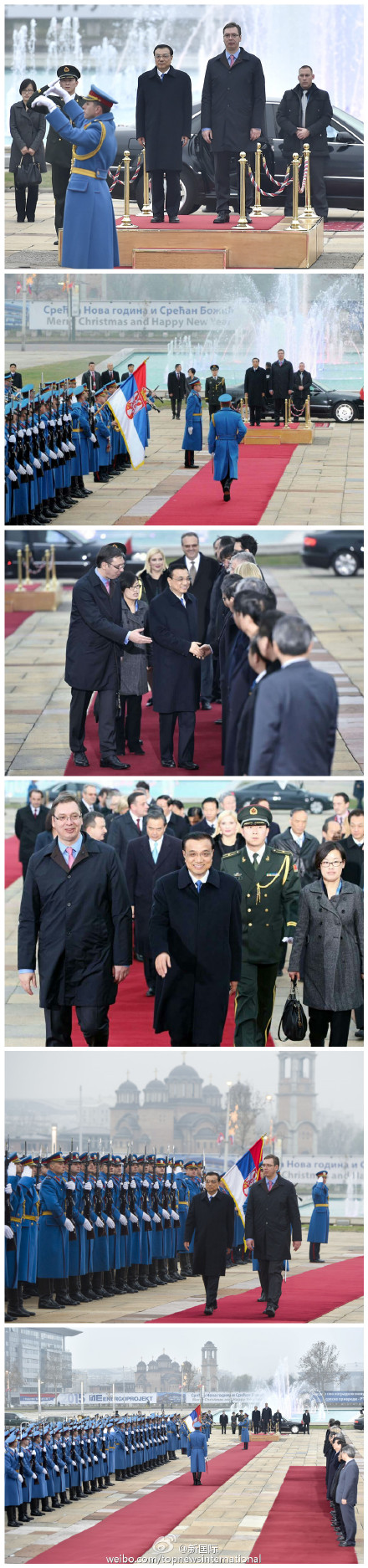 新華網(wǎng)北京12月18日電,據(jù)新華社“新國際”微博報道,當?shù)貢r間17日下午,塞爾維亞總理武契奇舉行隆重儀式,歡迎李克強總理的到訪。軍樂隊奏響中塞兩國國歌,李克強在武契奇的陪同下檢閱了儀仗隊。這是中國總理時隔28年后首次對塞進行正式訪問。
