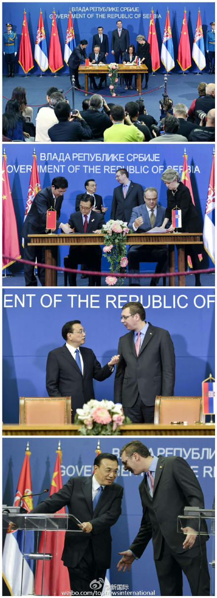 ????新華網(wǎng)北京12月18日電,據(jù)新華社“新國(guó)際”微博報(bào)道,李克強(qiáng)總理17日與塞爾維亞總理武契奇舉行會(huì)談。他說(shuō),希望中塞雙方密切人文交流,擴(kuò)大教育、文化、旅游合作,望塞方為中國(guó)游客提供更多簽證便利。會(huì)談后,兩國(guó)總理共同見(jiàn)證了雙方經(jīng)濟(jì)技術(shù)、能源、金融、航空、文化等領(lǐng)域合作文件的簽署。