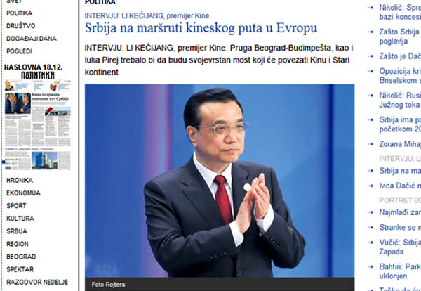 當(dāng)?shù)貢r(shí)間17日,在結(jié)束了中國(guó)-中東歐國(guó)家領(lǐng)導(dǎo)人會(huì)晤的相關(guān)活動(dòng)后,中國(guó)國(guó)務(wù)院總理李克強(qiáng)開(kāi)啟對(duì)塞爾維亞的正式訪問(wèn)。從14日出發(fā)開(kāi)始,李克強(qiáng)總理已經(jīng)訪問(wèn)了哈薩克斯、出席上合組織總理會(huì)議和中國(guó)-中東歐國(guó)家領(lǐng)導(dǎo)人會(huì)晤,中東歐多國(guó)媒體對(duì)總理的出訪活動(dòng)給予極大關(guān)注與高度評(píng)價(jià)。