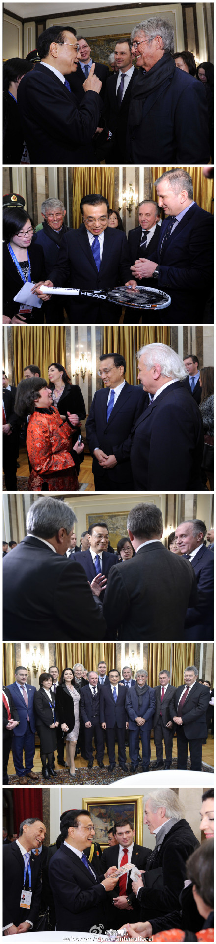 ??? 當(dāng)?shù)貢r間18日下午,李克強(qiáng)總理在塞爾維亞接受“貝爾格萊德榮譽(yù)市民”證書后,同在場的塞各界知名人士交流。他們既有為人熟知的電影演員、足球教練,也有歌劇表演藝術(shù)家和長期研究中國的漢學(xué)家。總理同他們親切交談,現(xiàn)場氣氛友好熱烈。