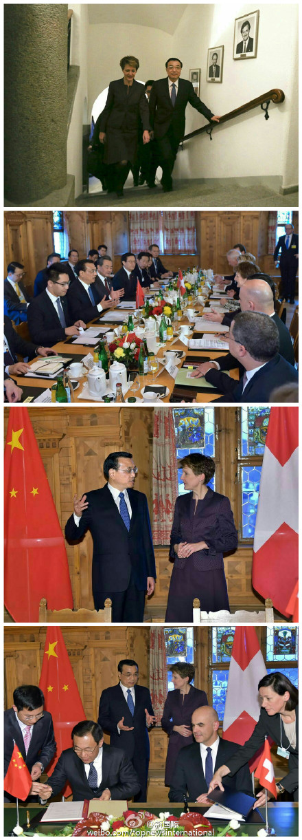 ??? 新華網(wǎng)北京1月22日電 據(jù)新華社“新國(guó)際”微博報(bào)道,當(dāng)?shù)貢r(shí)間21日下午,國(guó)務(wù)院總理李克強(qiáng)同瑞士聯(lián)邦主席索瑪魯加舉行會(huì)談。李克強(qiáng)說,中方歡迎瑞方參與人民幣國(guó)際化進(jìn)程,支持蘇黎世人民幣離岸市場(chǎng)建設(shè),愿給予瑞士500億元人民幣的合格境外投資者配額,希望瑞方為中資銀行在瑞開設(shè)分行提供便利。