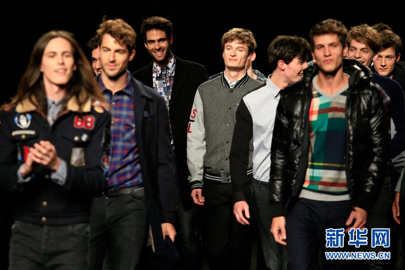 ????西班牙本土品牌Desigual3日在第15屆“080巴塞羅那時裝展”(080 Barcelona Fashion)上推出了自己的新款男裝。一水兒的型男帥哥走在T臺上,也是一道別樣的風景。(?!ぐ屠准{ 攝)????