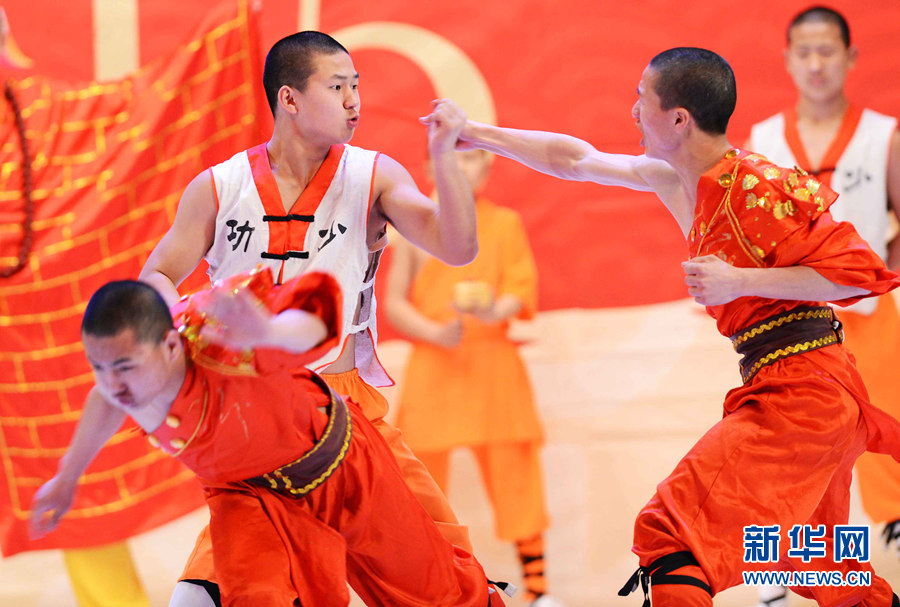 2月4日晚,在烏茲別克斯坦首都塔什干突厥宮,藝術(shù)家在表演中國武術(shù)和舞蹈。新華網(wǎng)記者 沙達提 攝