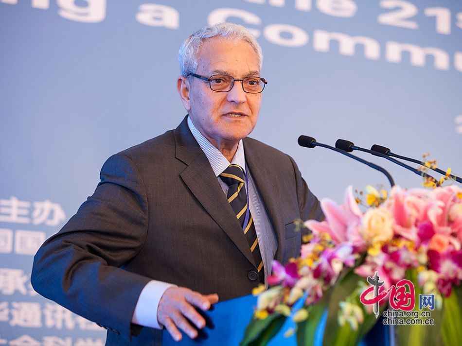 圖為埃及前駐華大使穆罕默德 賈拉爾在“21世紀海上絲綢之路國際研討會”高峰論壇發(fā)表演講。中國網(wǎng)記者 鄭亮 攝