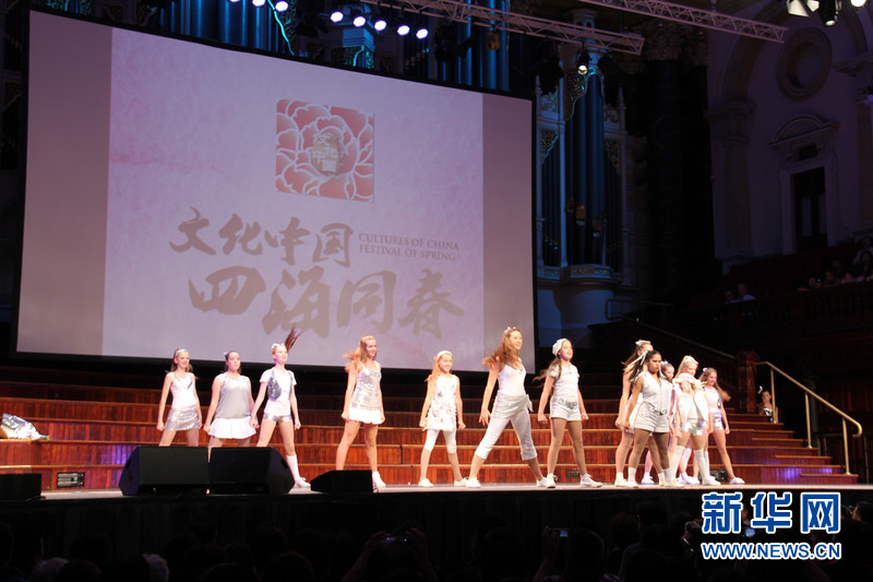 ??????? 2月25日,由中國國務(wù)院僑辦和中國海外交流協(xié)會聯(lián)合主辦的“文化中國·四海同春”在悉尼舉辦大洋洲團(tuán)的首場演出,歌手成方圓、中國好聲音學(xué)員李維、周深等國內(nèi)知名表演者和中澳藝術(shù)團(tuán)體為當(dāng)?shù)厝A僑華人送來新春祝福。圖為澳大利亞華星藝術(shù)團(tuán)為觀眾表演現(xiàn)代舞。新華社記者趙小娜攝