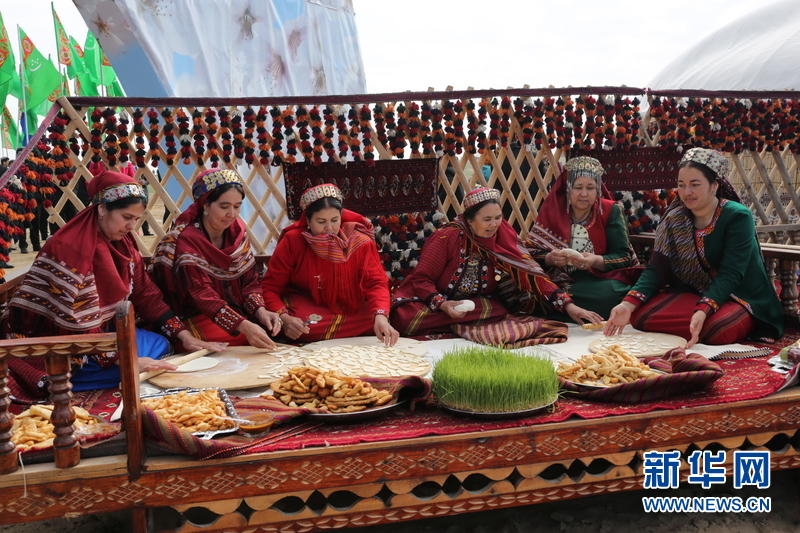 ????以往過著游牧和半游牧生活的人們在冰雪消融、牲畜產(chǎn)仔的時節(jié),都會以這一傳統(tǒng)佳節(jié)歡慶新生活。 21日上午,在阿什哈巴德以東40來公里處專門為節(jié)日搭建的場地上,土庫曼斯坦內(nèi)閣、外交使節(jié)、民眾和學(xué)生參加了隆重的慶?;顒??;顒又校嗄昴信?、學(xué)齡前兒童載歌載舞,民眾和藝術(shù)家展示傳統(tǒng)的編織和手工藝術(shù),青年男女高高地蕩起秋千,汗血寶馬進(jìn)行馬技表演,土庫曼咬狼犬、羊群和駱駝或圍在欄子里,或被主人牽在手中,展現(xiàn)出游牧民族的生活景象。