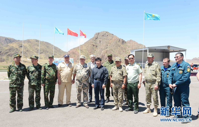 6月3日,上海合作組織成員國(guó)救援隊(duì)在在哈薩克斯坦阿拉木圖州塔姆卡壘塔斯景區(qū)的哈內(nèi)務(wù)部緊急情況委員會(huì)教練基地“巖石城-阿斯塔納”參加演練。新華社記者沙達(dá)提攝