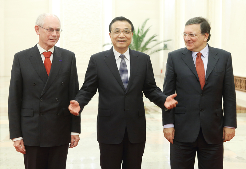 2013年11月21日,國務院總理李克強在北京人民大會堂同歐洲理事會主席范龍佩、歐盟委員會主席巴羅佐共同主持第十六次中國歐盟領導人會晤。(新華社記者姚大偉攝)
