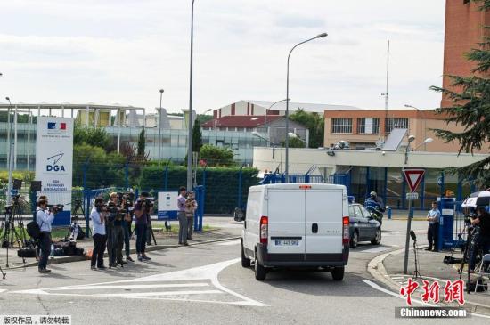 資料圖:當?shù)貢r間2015年8月1日,法國巴爾馬,在法屬留尼旺島發(fā)現(xiàn)的疑似波音777機翼殘骸抵達法國,警衛(wèi)隊護送運載該殘骸的車輛前往法國南部城市圖盧茲附近的國防部實驗室。