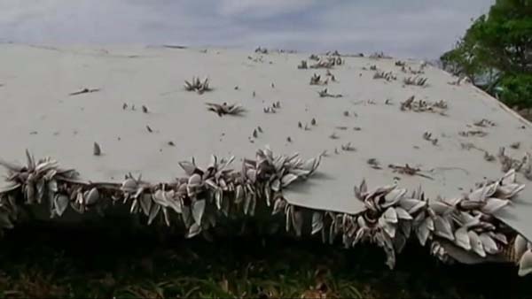 波音777襟副翼殘骸表面布滿貝殼(網(wǎng)頁截圖)