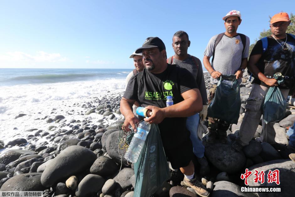 法留尼汪島搜索馬航MH370殘骸 現(xiàn)中文字水瓶【組圖】