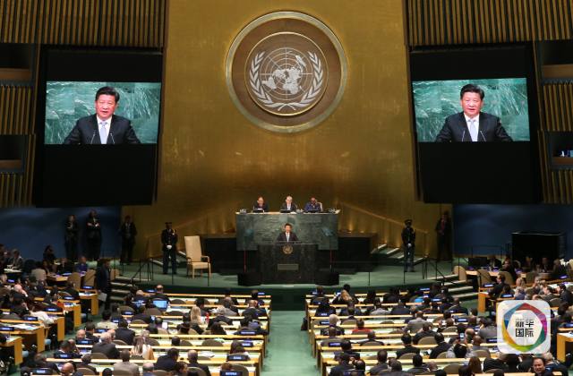 圖:習(xí)近平出席第70屆聯(lián)合國(guó)大會(huì)一般性辯論并發(fā)表重要講話(新華社記者龐興雷攝)
