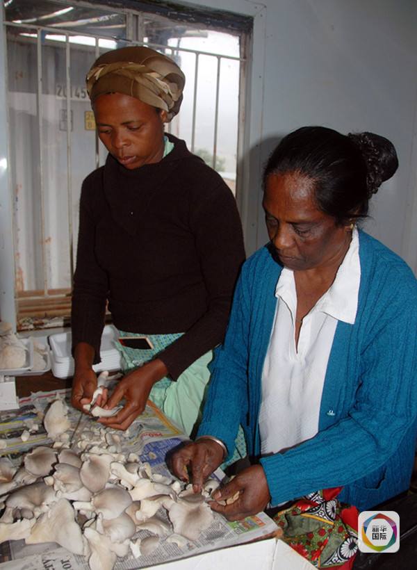 ????2007年10月4日,在南非東南部祖魯王國山區(qū)夸丁迪村,當?shù)貗D女包裝加工自己種植的蘑菇。2005年1月,福建農(nóng)林大學的中國菌草蘑菇專家林占教授把菌草蘑菇栽培技術引入祖魯王國,經(jīng)過教授和試種,蘑菇已經(jīng)成為當?shù)剞r(nóng)民脫貧致富的希望。新華社記者陳銘攝