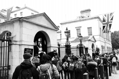 10月16日,在英國倫敦皇家騎兵衛(wèi)隊(duì)檢閱場,正門外已掛出大幅中英兩國國旗,往來游人與身穿傳統(tǒng)制服的衛(wèi)隊(duì)哨兵合影留念。20日,為前來英國進(jìn)行國事訪問的習(xí)近平主席舉行的歡迎儀式將在這里進(jìn)行?,F(xiàn)場將鳴放21響禮炮,女王伊麗莎白二世與其丈夫愛丁堡公爵菲利普親王將陪同習(xí)近平主席檢閱英國皇家儀仗隊(duì)。隨后,女王夫婦將陪同習(xí)近平主席夫婦從這里乘坐皇家馬車前往白金漢宮,并共進(jìn)午宴。 本報(bào)駐倫敦記者 戴軍攝