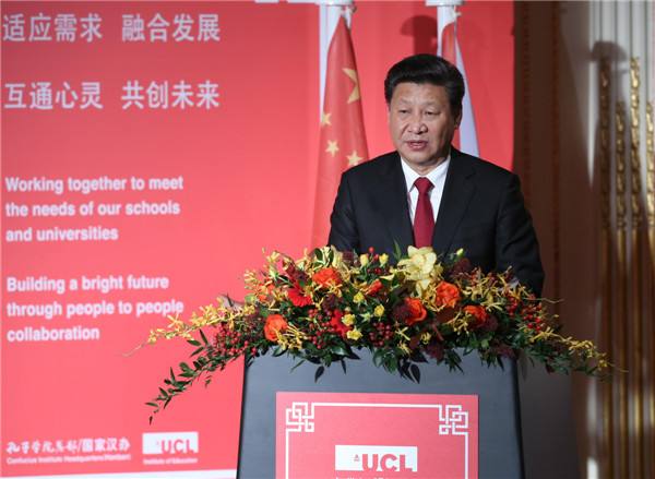 10月22日,國(guó)家主席習(xí)近平在倫敦出席全英孔子學(xué)院和孔子課堂年會(huì)開幕式。這是習(xí)近平在年會(huì)開幕式上致辭。(新華社記者龐興雷攝)
