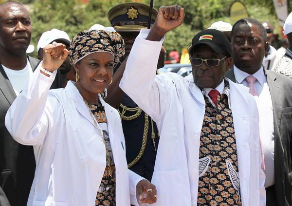 2014年12月6日,總統(tǒng)穆加貝和第一夫人格蕾絲在首都哈拉雷出席執(zhí)政黨民盟會議。(新華社/路透)