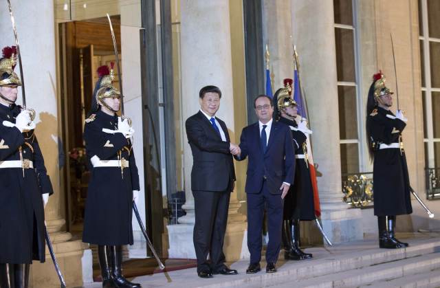 11月29日,國(guó)家主席習(xí)近平在巴黎會(huì)見法國(guó)總統(tǒng)奧朗德。新華社記者黃敬文攝