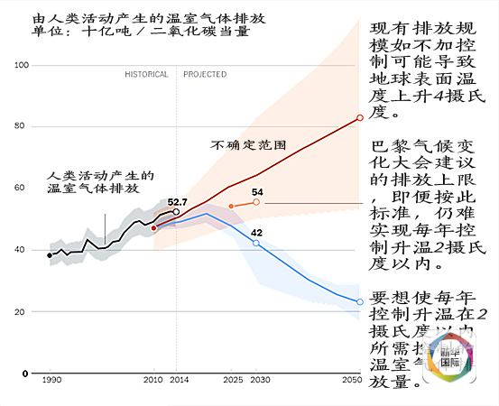 根據(jù)聯(lián)合國(guó)環(huán)境規(guī)劃署和世界資源研究所等機(jī)構(gòu)的數(shù)據(jù),全球由人類活動(dòng)引發(fā)的溫室氣體排放量呈上升趨勢(shì),2012年接近500億噸二氧化碳當(dāng)量,2014年達(dá)到527億噸二氧化碳當(dāng)量。