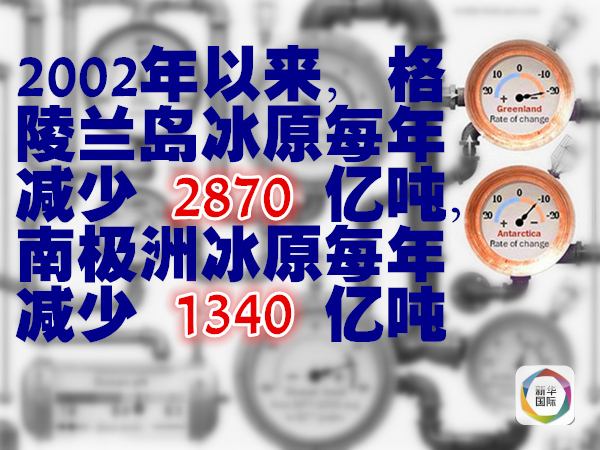 科學家認定,由于氣溫和海水溫度升高的雙重影響,分別位于格陵蘭島和南極洲的地球兩大冰原正在消失。美國國家航空航天局噴氣推進實驗室收集的衛(wèi)星數(shù)據(jù)顯示,2002年以來,格陵蘭島冰原每年減少2870億噸,南極洲冰原每年減少1340億噸。
