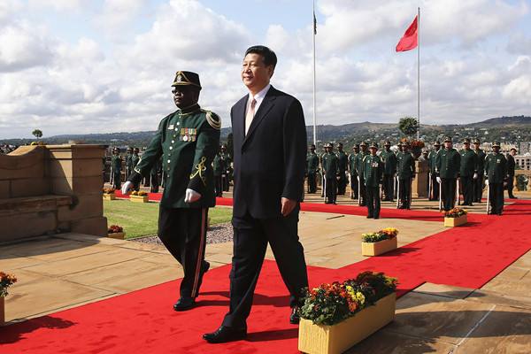 2013年3月26日,南非總統(tǒng)祖馬在比勒陀利亞聯邦大廈前廣場舉行儀式,歡迎中國國家主席習近平訪問南非。( 新華社記者蘭紅光攝)