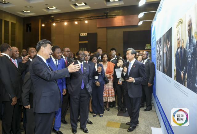 12月4日,國家主席習(xí)近平在約翰內(nèi)斯堡出席中非合作論壇15周年成果圖片展開幕式,同南非總統(tǒng)祖馬,非盟輪值主席、津巴布韋總統(tǒng)穆加貝一道為展覽剪彩。這是習(xí)近平同非洲國家和地區(qū)組織領(lǐng)導(dǎo)人觀看展覽。(新華社記者謝環(huán)馳攝)