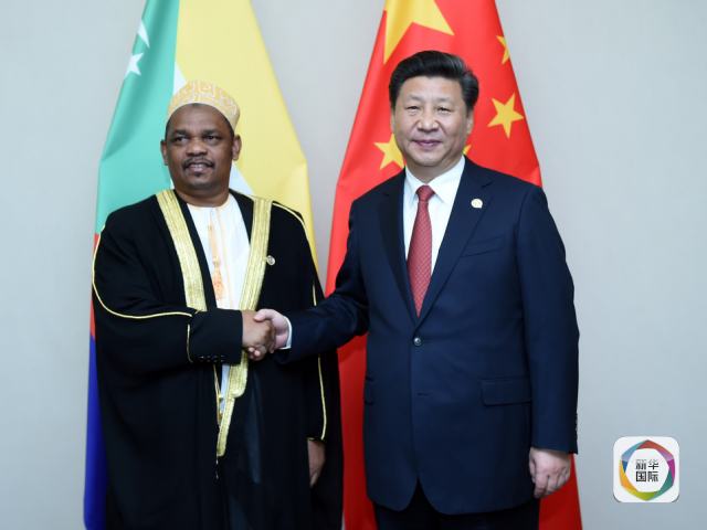 12月4日,國家主席習(xí)近平在約翰內(nèi)斯堡會(huì)見科摩羅總統(tǒng)伊基利盧。(新華社記者張鐸攝)