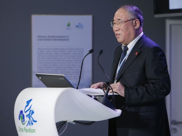 12月1日,中國氣候變化事務(wù)特別代表解振華在中國與亞洲開發(fā)銀行氣候變化合作高級別邊會中致辭。新華社記者周磊攝