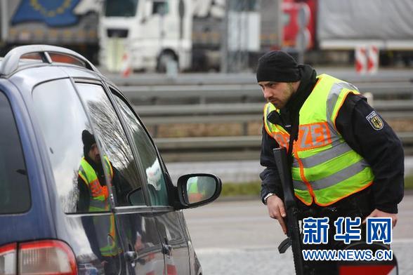 在比利時東部靠近德國亞琛的邊界,德國警方設(shè)置了路障,檢查過往車輛。記者在高速公路檢查站看到,兩名德國特警把守兩邊,所有車輛逐一通過。需要進(jìn)一步檢查的車輛按指揮進(jìn)入特定區(qū)域,德國警方要求被檢車輛司機(jī)出示證件,并對汽車內(nèi)部進(jìn)行仔細(xì)翻查。檢查站中??苛耍保岸噍v各型警車,值勤警察荷槍實(shí)彈,檢查站旁還有一架警方直升機(jī)。