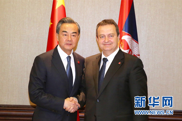 6月17日,中國外交部長王毅(左)在貝爾格萊德應(yīng)約會(huì)見塞爾維亞第一副總理兼外長達(dá)契奇。 新華社記者丁林?jǐn)z