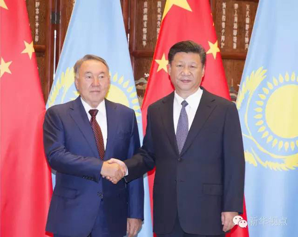 同納扎爾巴耶夫總統(tǒng)會(huì)談時(shí),習(xí)近平主席指出,中哈雙方要全面推進(jìn)“一帶一路”建設(shè)。兩國(guó)元首還共同見(jiàn)證了有關(guān)“絲綢之路經(jīng)濟(jì)帶”建設(shè)與“光明之路”新經(jīng)濟(jì)政策對(duì)接合作等文件的簽署。