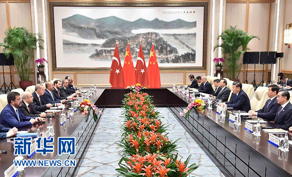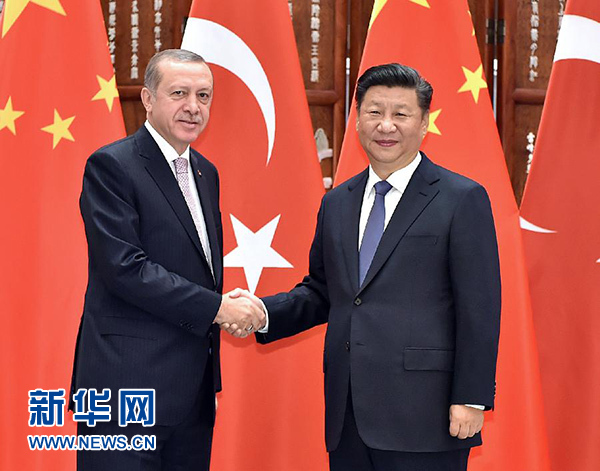 9月3日,國家主席習(xí)近平在杭州會見來華出席二十國集團(tuán)領(lǐng)導(dǎo)人杭州峰會的土耳其總統(tǒng)埃爾多安。 新華社記者 李濤 攝