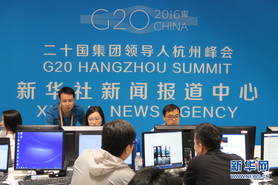 二十國集團(tuán)工商峰會(B20)于9月3日至4日在杭州舉辦。作為G20機制的重要配套活動,B20是各國工商界參與全球經(jīng)濟(jì)治理和推動世界經(jīng)濟(jì)增長的重要平臺。圖為工商峰會開幕當(dāng)天,新聞中心內(nèi)記者忙碌的身影。新華網(wǎng) 陳競超 攝