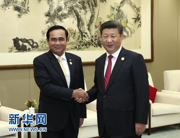新華社杭州9月4日電(記者白潔、岳德亮)國家主席習(xí)近平4日在杭州會(huì)見作為嘉賓國領(lǐng)導(dǎo)人出席二十國集團(tuán)領(lǐng)導(dǎo)人杭州峰會(huì)的泰國總理巴育。
