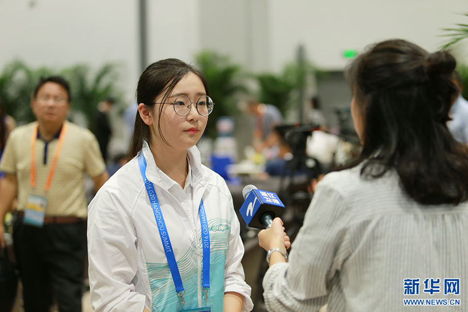 ????“小青荷”是此次峰會志愿者的代名詞。這個名字取自宋代詩人楊萬里描寫杭州的詩句“接天蓮葉無窮碧,映日荷花別樣紅”,“青荷”也音同“親和”,他們成了G20杭州峰會新聞中心里一道亮麗的風(fēng)景。新華網(wǎng) 祝立銘 攝