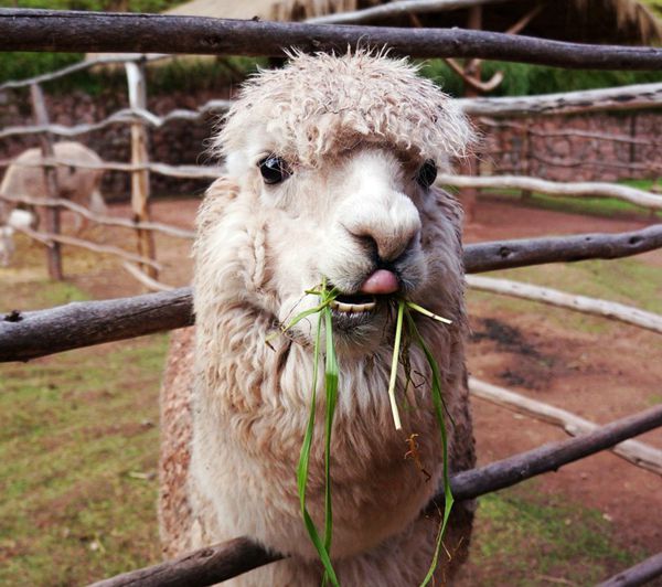 ????羊駝模樣乖巧,大眼睛、長脖子。有的渾身細(xì)茸,也有的長毛垂地。神態(tài)慵懶似駱駝卻無駝峰;性情溫順又似好脾氣的小綿羊,是人見人愛的山地寵物。