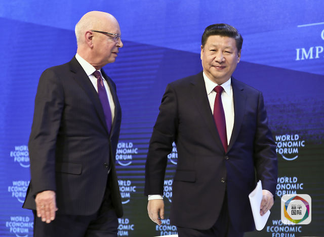1月17日,國家主席習(xí)近平在瑞士達(dá)沃斯國際會議中心出席世界經(jīng)濟(jì)論壇2017年年會開幕式,并發(fā)表題為《共擔(dān)時代責(zé)任 共促全球發(fā)展》的主旨演講。這是習(xí)近平同世界經(jīng)濟(jì)論壇創(chuàng)始人兼執(zhí)行主席施瓦布在一起。(新華社記者 蘭紅光 攝)