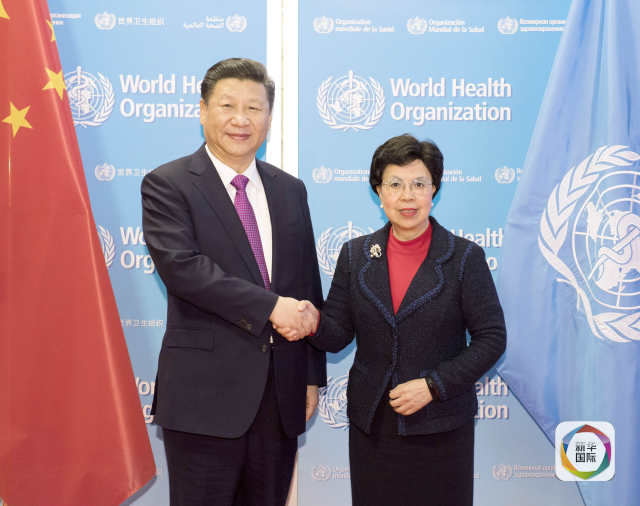 1月18日,國(guó)家主席習(xí)近平在瑞士日內(nèi)瓦訪問(wèn)世界衛(wèi)生組織并會(huì)見(jiàn)陳馮富珍總干事。(新華社記者李學(xué)仁攝)