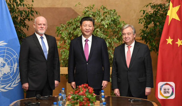 離開(kāi)世界衛(wèi)生組織總部,習(xí)主席來(lái)到萬(wàn)國(guó)宮瑞士廳,同第71屆聯(lián)大主席湯姆森和聯(lián)合國(guó)秘書(shū)長(zhǎng)古特雷斯舉行會(huì)見(jiàn)。這也是古特雷斯今年1月正式履新聯(lián)合國(guó)“掌門(mén)人”后,習(xí)主席和他的第一次會(huì)面。