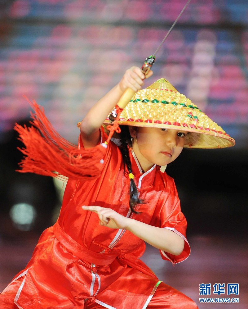 1月18日晚,烏茲別克斯坦首都塔什干人民友誼宮,烏茲別克斯坦中華民族文化中心武術(shù)隊隊員在表演武術(shù)。