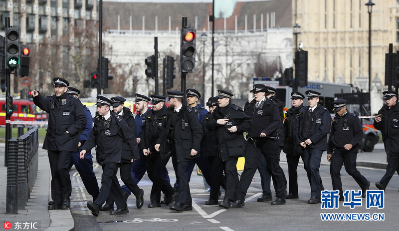 當?shù)貢r間2017年3月22日,英國倫敦,英國威斯敏斯特議會大廈附近發(fā)生襲擊事件,威斯敏斯特橋上有車輛沖撞行人;另外有持刀歹徒攻擊議會大廈執(zhí)勤警察后被擊斃,報道稱多人受傷。襲擊發(fā)生后,議會大廈臨時關閉,英國議會下院的會議暫停。倫敦警方目前暫時將此事作為恐怖事件處理。據(jù)外媒報道,英國警方封閉了倫敦議會大廈周邊的街道。圖片來源:東方IC