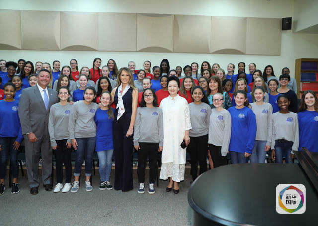 國家主席習(xí)近平夫人彭麗媛首先參觀巴克藝術(shù)中學(xué)的聲樂教室,她親切地向?qū)W生們問好,并欣賞幾十名學(xué)生們演唱的音樂劇《小婦人》選段《出色》。彭麗媛稱贊學(xué)生們唱得很好。