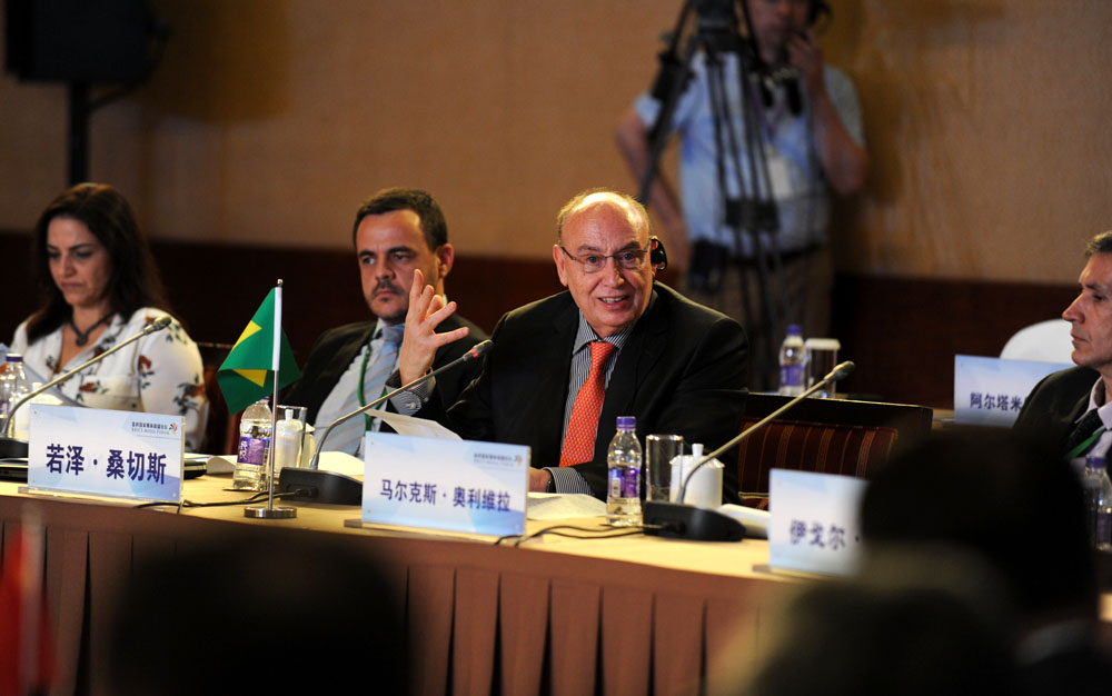 金磚國(guó)家媒體高端論壇開幕式6月8日在北京舉行。圖為論壇共同主席、巴西金融資訊集團(tuán)總裁若澤·桑切斯發(fā)表講話。 新華網(wǎng) 孫韜 攝