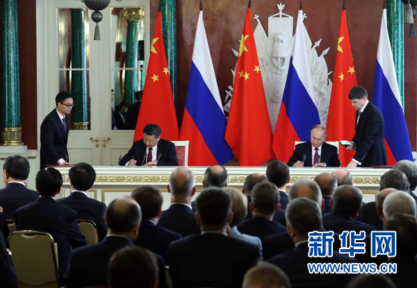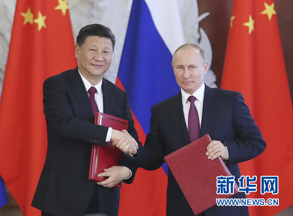 7月4日,國家主席習(xí)近平在莫斯科克里姆林宮同俄羅斯總統(tǒng)普京舉行會談。會談后,兩國元首簽署了《中華人民共和國和俄羅斯聯(lián)邦關(guān)于進(jìn)一步深化全面戰(zhàn)略協(xié)作伙伴關(guān)系的聯(lián)合聲明》《中華人民共和國和俄羅斯聯(lián)邦關(guān)于當(dāng)前世界形勢和重大國際問題的聯(lián)合聲明》,批準(zhǔn)了《〈中華人民共和國和俄羅斯聯(lián)邦睦鄰友好合作條約〉實(shí)施綱要(2017年至2020年)》并見證了《中華人民共和國外交部和俄羅斯聯(lián)邦外交部關(guān)于朝鮮半島問題的聯(lián)合聲明》以及經(jīng)貿(mào)、農(nóng)業(yè)、能源、基礎(chǔ)設(shè)施建設(shè)、金融、文化、創(chuàng)新、媒體、信息網(wǎng)絡(luò)、檢驗(yàn)檢疫等領(lǐng)域多項(xiàng)雙邊合作文件的交換。新華社記者 饒愛民 攝
