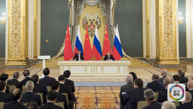 7月4日,國家主席習近平在莫斯科克里姆林宮同俄羅斯總統(tǒng)普京舉行會談。會談后,兩國元首簽署了《中華人民共和國和俄羅斯聯(lián)邦關(guān)于進一步深化全面戰(zhàn)略協(xié)作伙伴關(guān)系的聯(lián)合聲明》《中華人民共和國和俄羅斯聯(lián)邦關(guān)于當前世界形勢和重大國際問題的聯(lián)合聲明》,批準了《〈中華人民共和國和俄羅斯聯(lián)邦睦鄰友好合作條約〉實施綱要(2017年至2020年)》并見證了《中華人民共和國外交部和俄羅斯聯(lián)邦外交部關(guān)于朝鮮半島問題的聯(lián)合聲明》以及經(jīng)貿(mào)、農(nóng)業(yè)、能源、基礎(chǔ)設(shè)施建設(shè)、金融、文化、創(chuàng)新、媒體、信息網(wǎng)絡(luò)、檢驗檢疫等領(lǐng)域多項雙邊合作文件的交換。(新華社記者饒愛民攝)