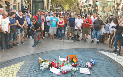 一些受害者家屬在蘭布拉斯大街上以蠟燭和鮮花悼念自己的親人,來(lái)自不同國(guó)家、不同民族的民眾自發(fā)上前給予擁抱和鼓勵(lì)。一位參加悼念活動(dòng)的巴塞羅那女士對(duì)本報(bào)記者表示:“我們從未想過(guò)恐怖襲擊會(huì)真的在巴塞羅那發(fā)生,但當(dāng)不幸發(fā)生時(shí),我們一定要冷靜下來(lái),不害怕、正視它,才是撫平傷痛、應(yīng)對(duì)恐怖分子最好的方式?!?/p>
