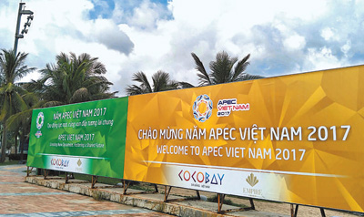 2017年亞太經(jīng)合組織(APEC)領(lǐng)導(dǎo)人會(huì)議周將于11月6日在越南峴港拉開(kāi)帷幕,其間將舉行APEC第二十五次領(lǐng)導(dǎo)人非正式會(huì)議。圖為峴港街頭的宣傳牌。記者 劉剛攝