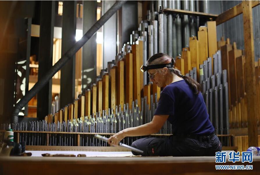 澳大利亞管風琴修理師凱特·芭特利在安插管風琴卡薩翁的音管(10月23日攝)。新華社記者 姜克紅攝