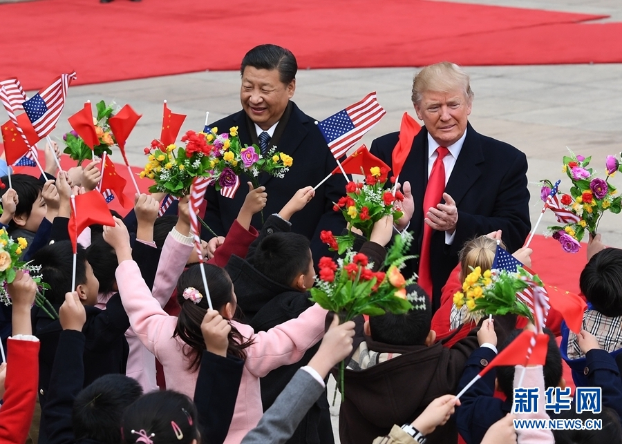 11月9日,國(guó)家主席習(xí)近平在北京人民大會(huì)堂東門(mén)外廣場(chǎng)舉行歡迎儀式,歡迎美利堅(jiān)合眾國(guó)總統(tǒng)唐納德·特朗普對(duì)中國(guó)進(jìn)行國(guó)事訪問(wèn)。 新華社記者饒愛(ài)民攝